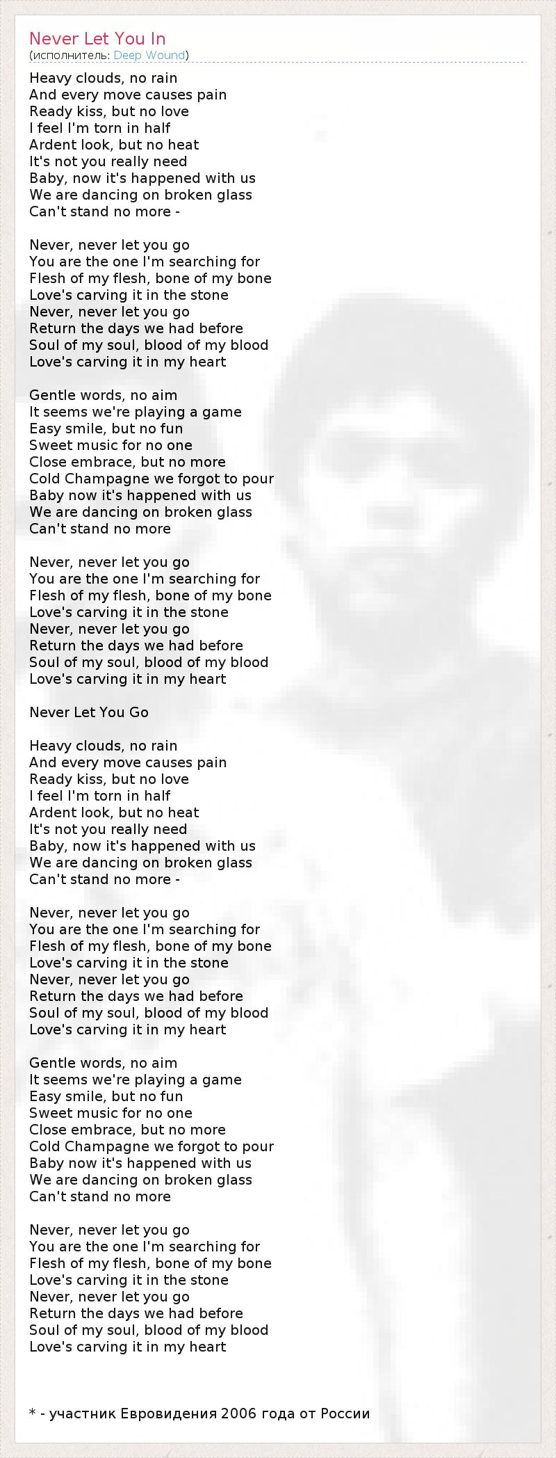 А как ты думаешь, о чем песня "Never Let You In" ?