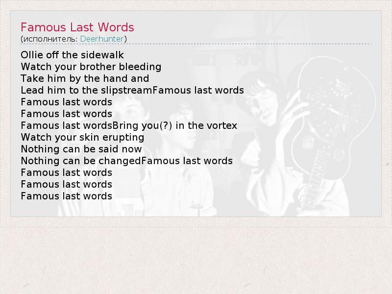 А как ты думаешь, о чем песня "Famous Last Words" ?
