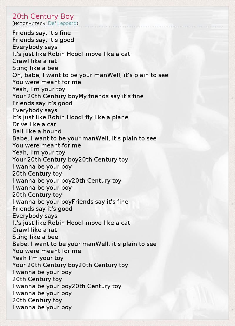 А как ты думаешь, о чем песня "20th Century Boy" ?