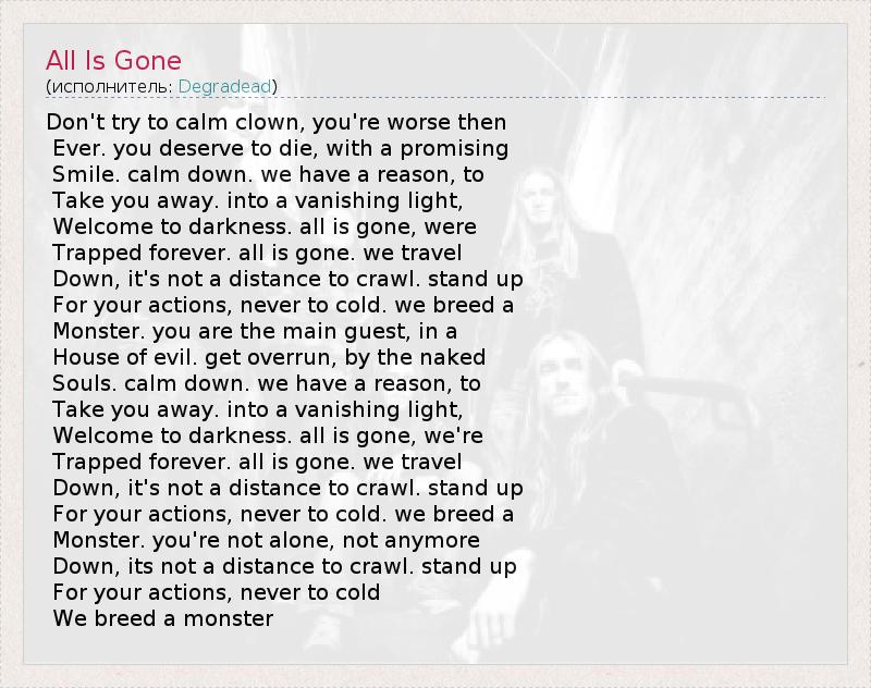 А как ты думаешь, о чем песня "All Is Gone" ?