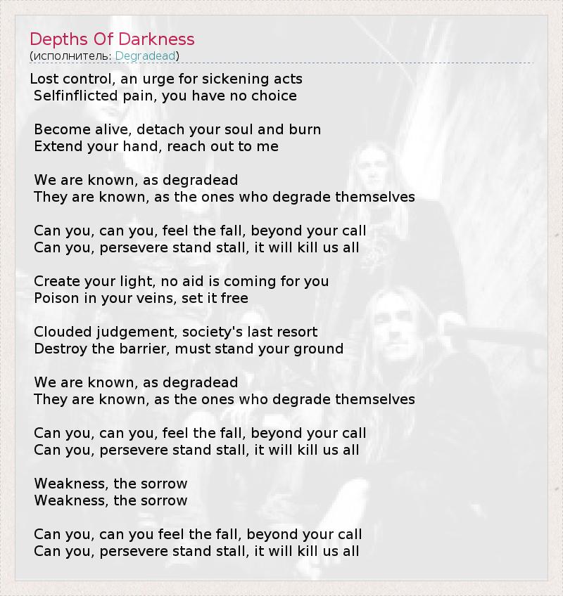 А как ты думаешь, о чем песня "Depths Of Darkness" ?