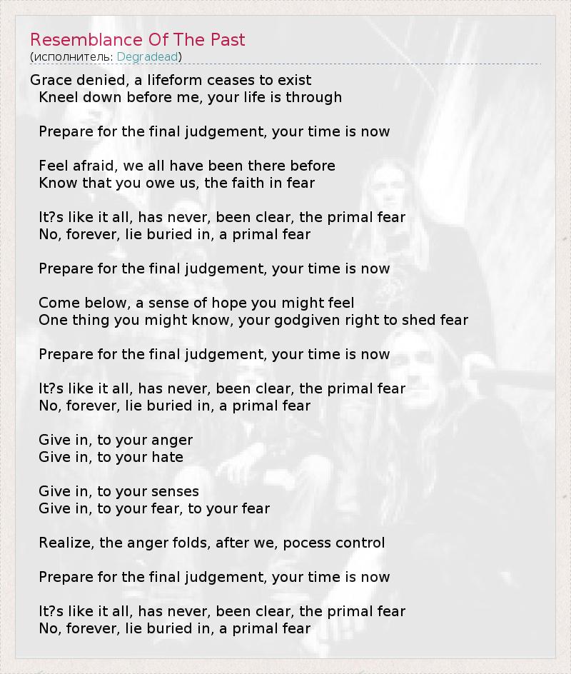 А как ты думаешь, о чем песня "Resemblance Of The Past" ?