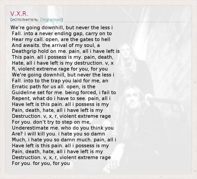 Это интересно:DEGRADEAD - Melodic Death Metal группа из Швеции. За своё существование Degradead записали 4 альбома, отыграли множество концертов по Европе и за её пределами, в том числе и выступления на крупнейших метал-фестивалях:Wacken Open Air, Getaway Rock Festival и др., с такими командами как In Flames, Dark Tranquillity, Satirycon, Megadeth, Deftones, Hypocrisy, Iron Maiden и многими другими. О Degradead поговаривают как о надежде стиля Modern/Melodic Death Metal, солист группы In Flames... продолжение