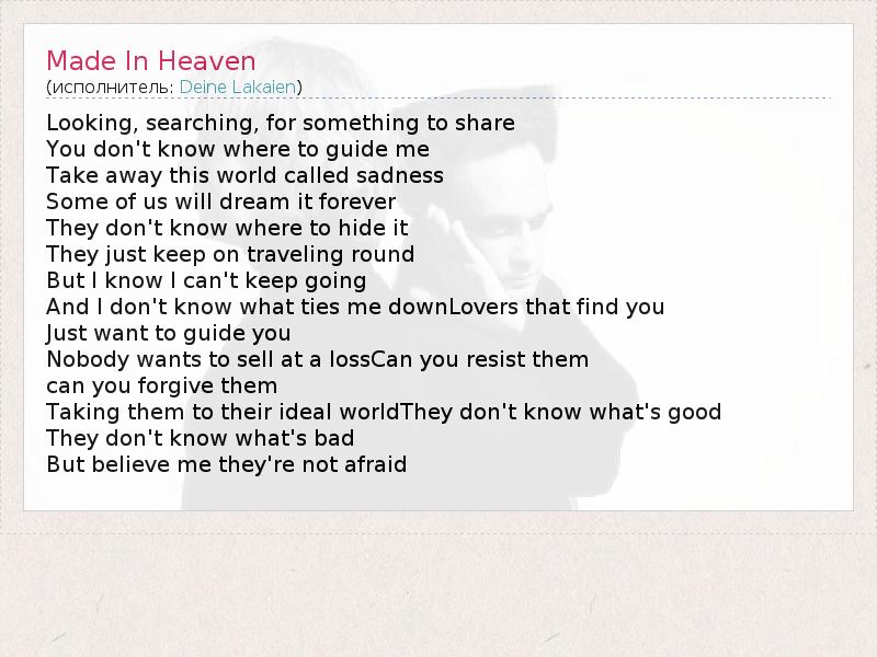 А как ты думаешь, о чем песня "Made In Heaven" ?