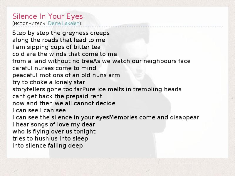 А как ты думаешь, о чем песня "Silence In Your Eyes" ?