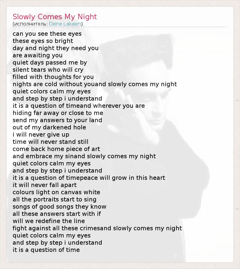 А как ты думаешь, о чем песня "Slowly Comes My Night" ?
