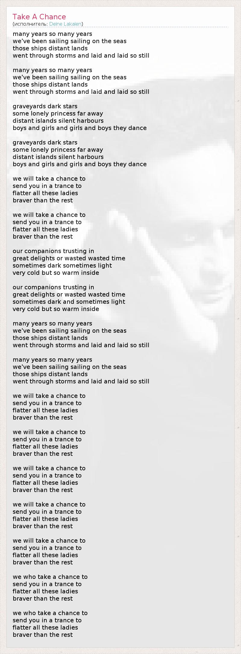 А как ты думаешь, о чем песня "Take A Chance" ?
