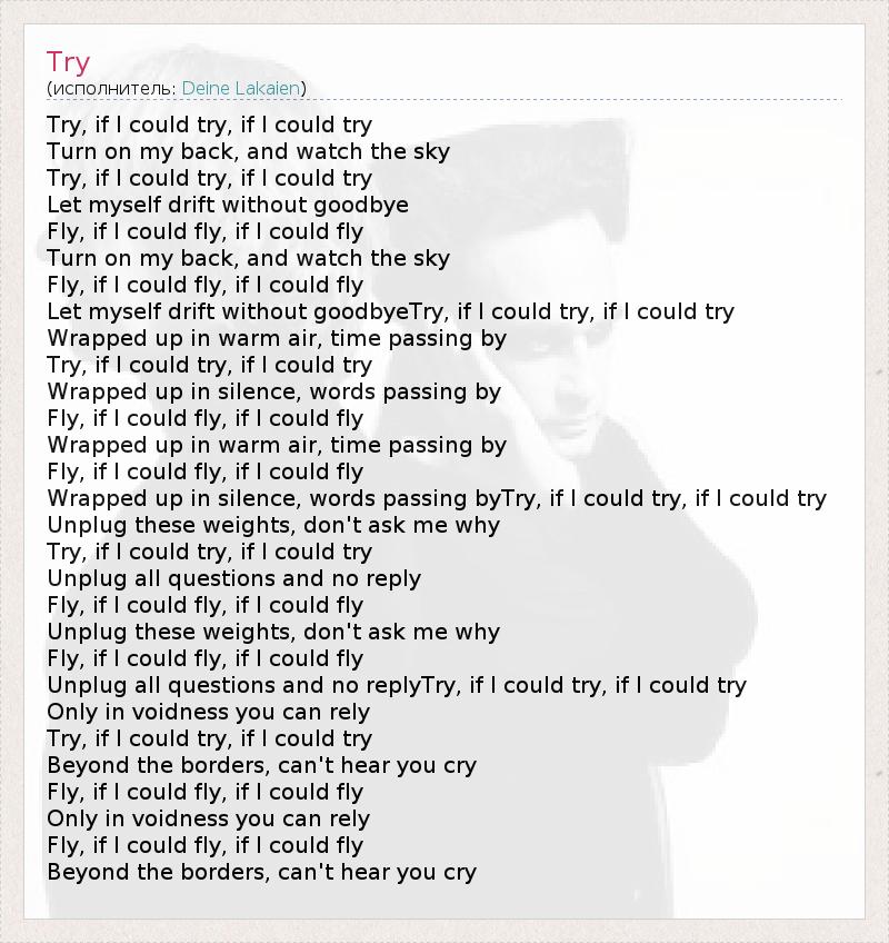 Wrapped up in silence, words passing byTry, if I could try, if I could try