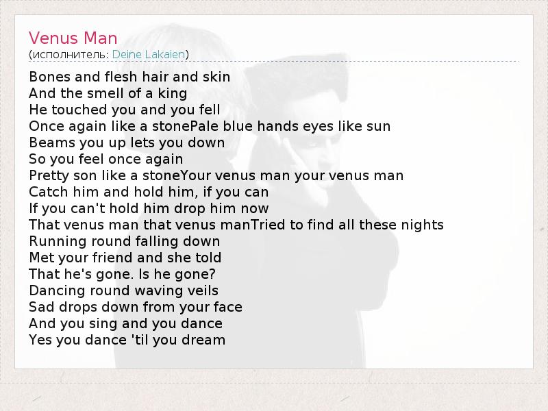А как ты думаешь, о чем песня "Venus Man" ?