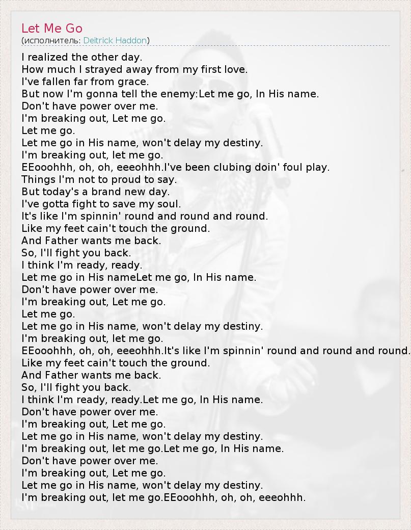 But now I'm gonna tell the enemy:Let me go, In His name.