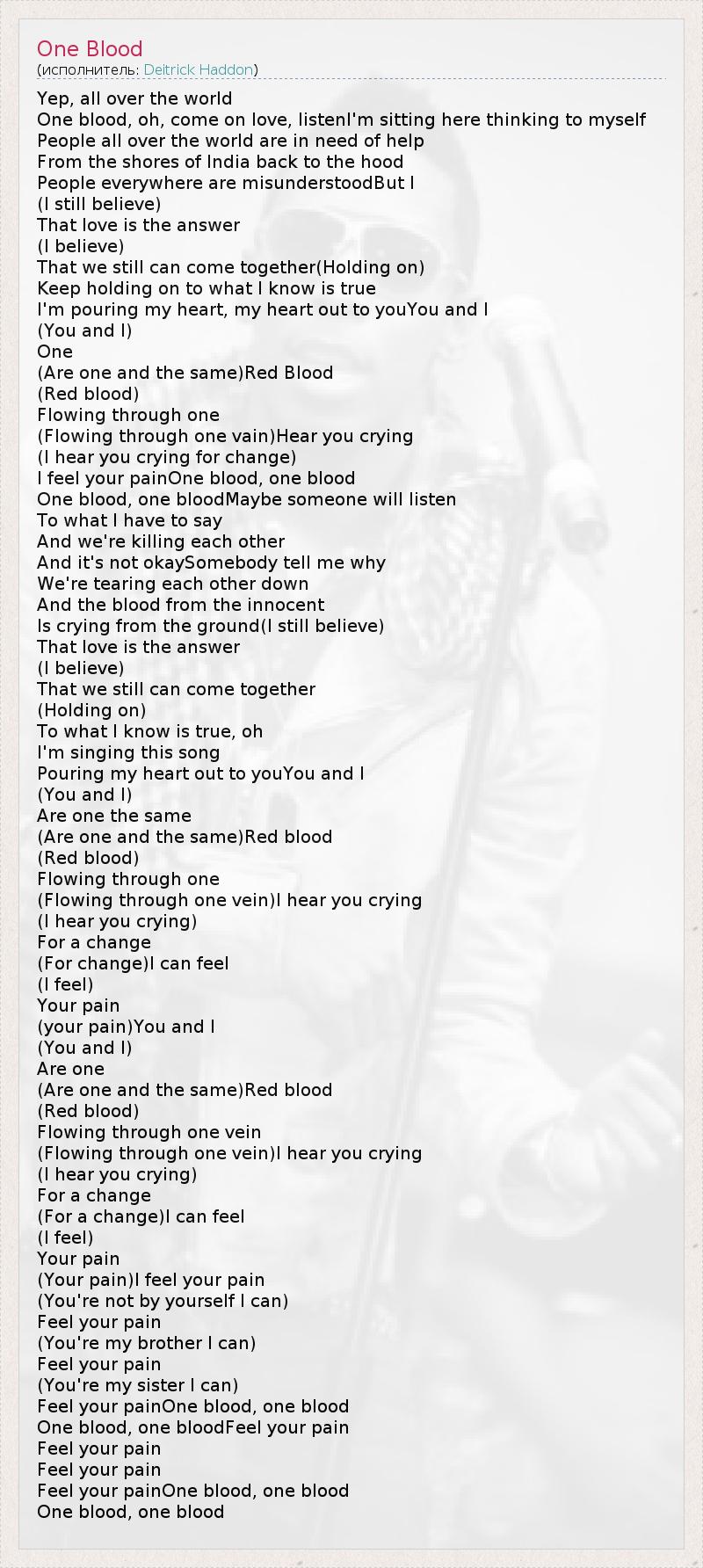 One blood, oh, come on love, listenI'm sitting here thinking to myself