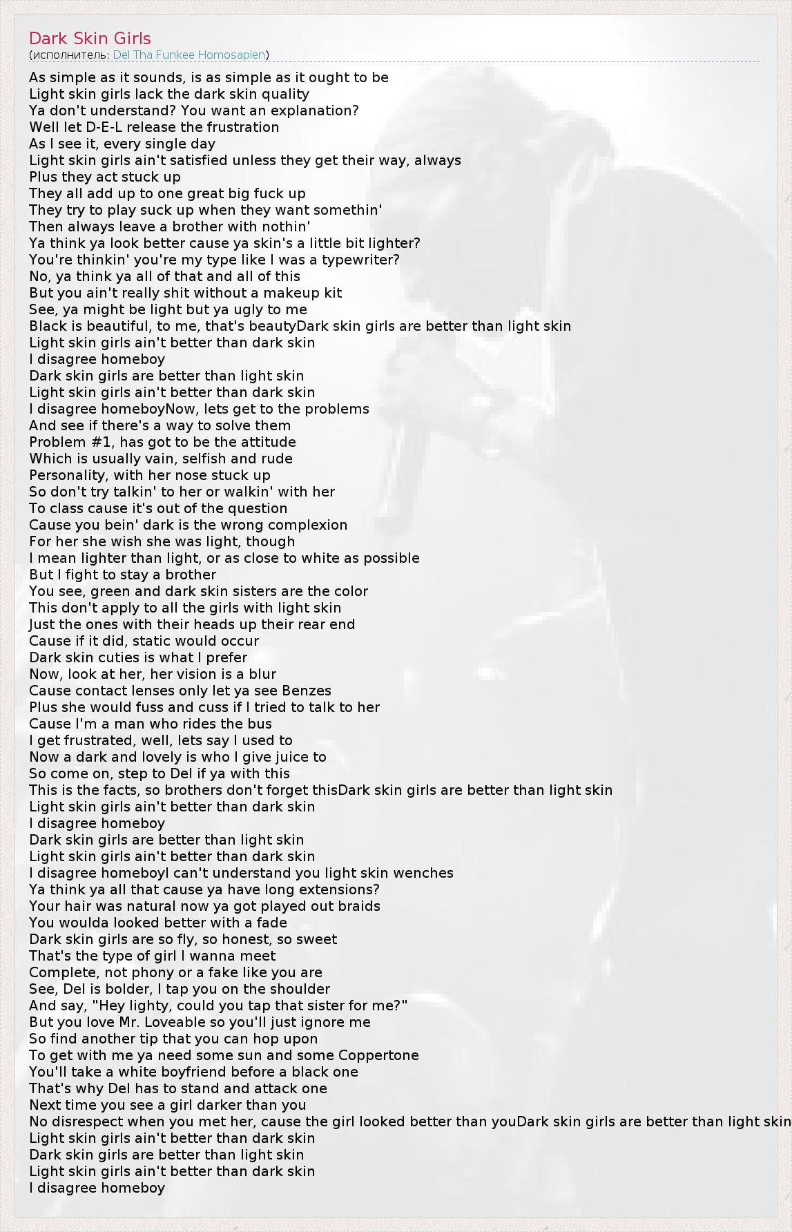 А как ты думаешь, о чем песня "Dark Skin Girls" ?