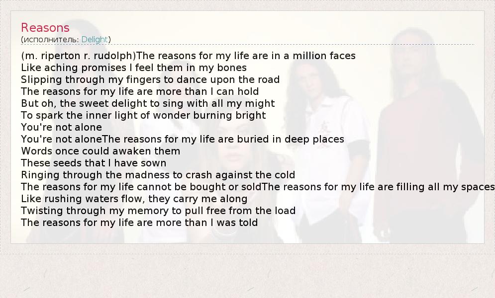(m. riperton r. rudolph)The reasons for my life are in a million faces