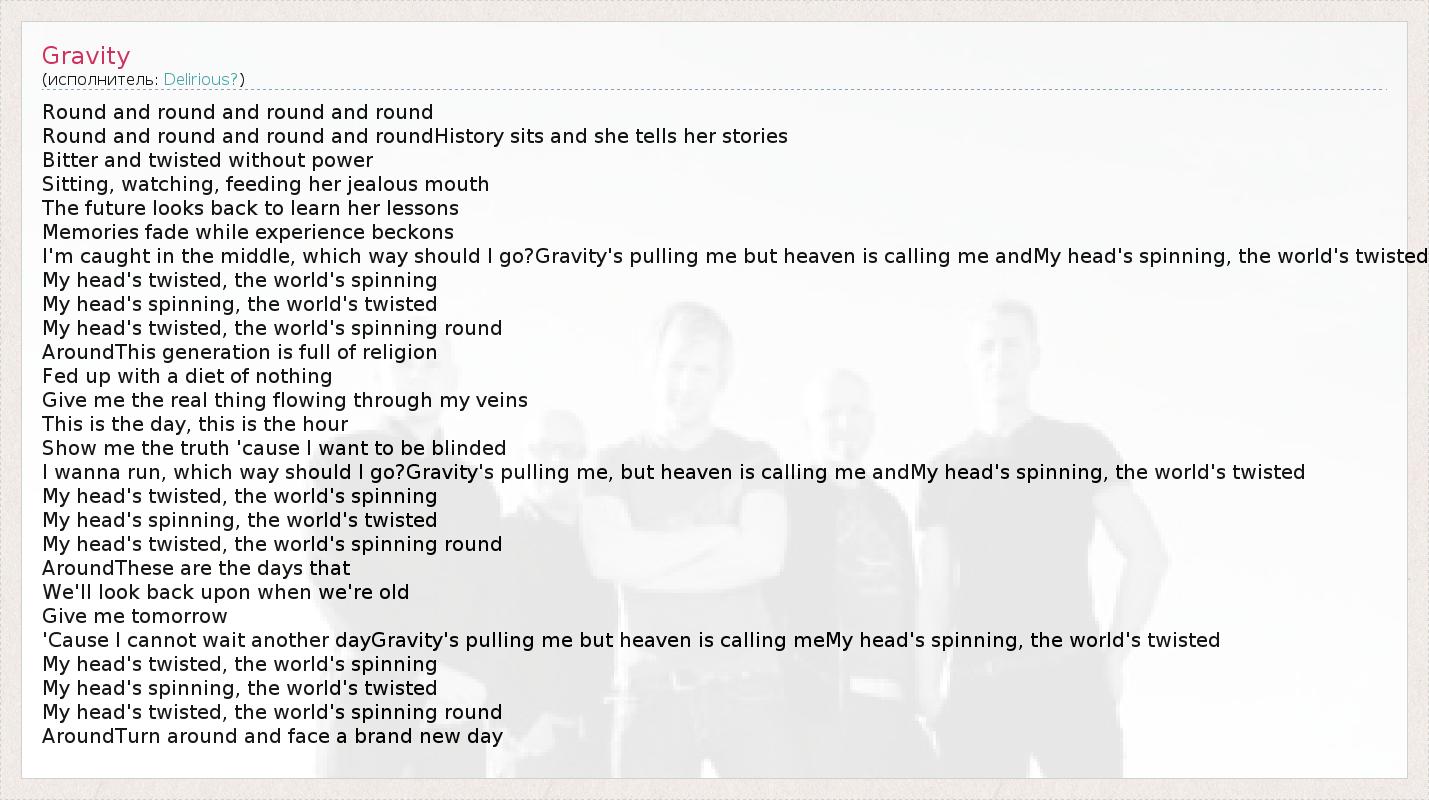 I wanna run, which way should I go?Gravity's pulling me, but heaven is calling me andMy head's spinning, the world's twisted