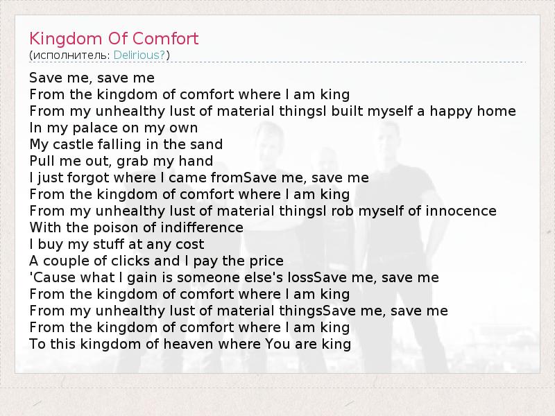 А как ты думаешь, о чем песня "Kingdom Of Comfort" ?