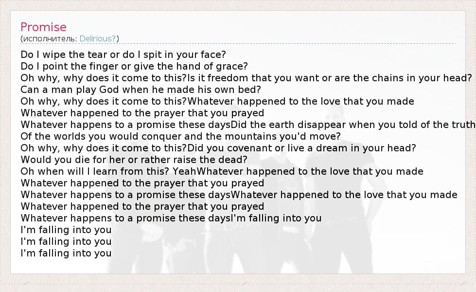 А как ты думаешь, о чем песня "Promise" ?