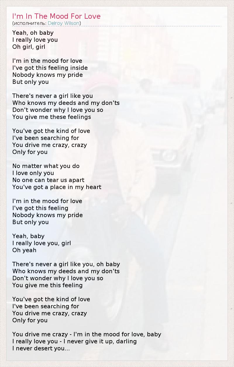 А как ты думаешь, о чем песня "I'm In The Mood For Love" ?