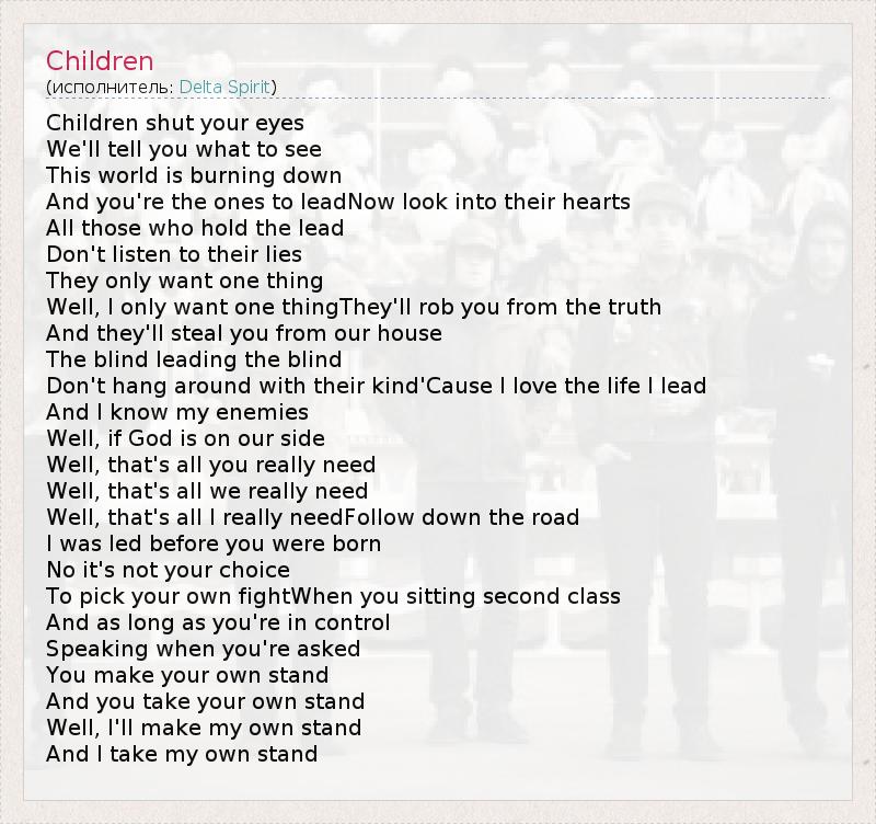 Это интересно:Delta Spirit is a band from San Diego, California. They are often dubbed as a “hybrid of rock and northern soul” or as an "Americana/soul" group. The group incorporates unconventional instruments (such as trash cans lids and orchestral bass drums), the multi-instrumentalism of the members and the vocal delivery and religiously/spiritually-themed lyrics of singer Matt Vasquez. The group consists of Jon Jameson (bassist), Brandon Young (percussionist), Matthew Vasquez (vocalist/guitarist), Sean Walker (guitarist), and Kelly Winrich (multi-instrumentalist).