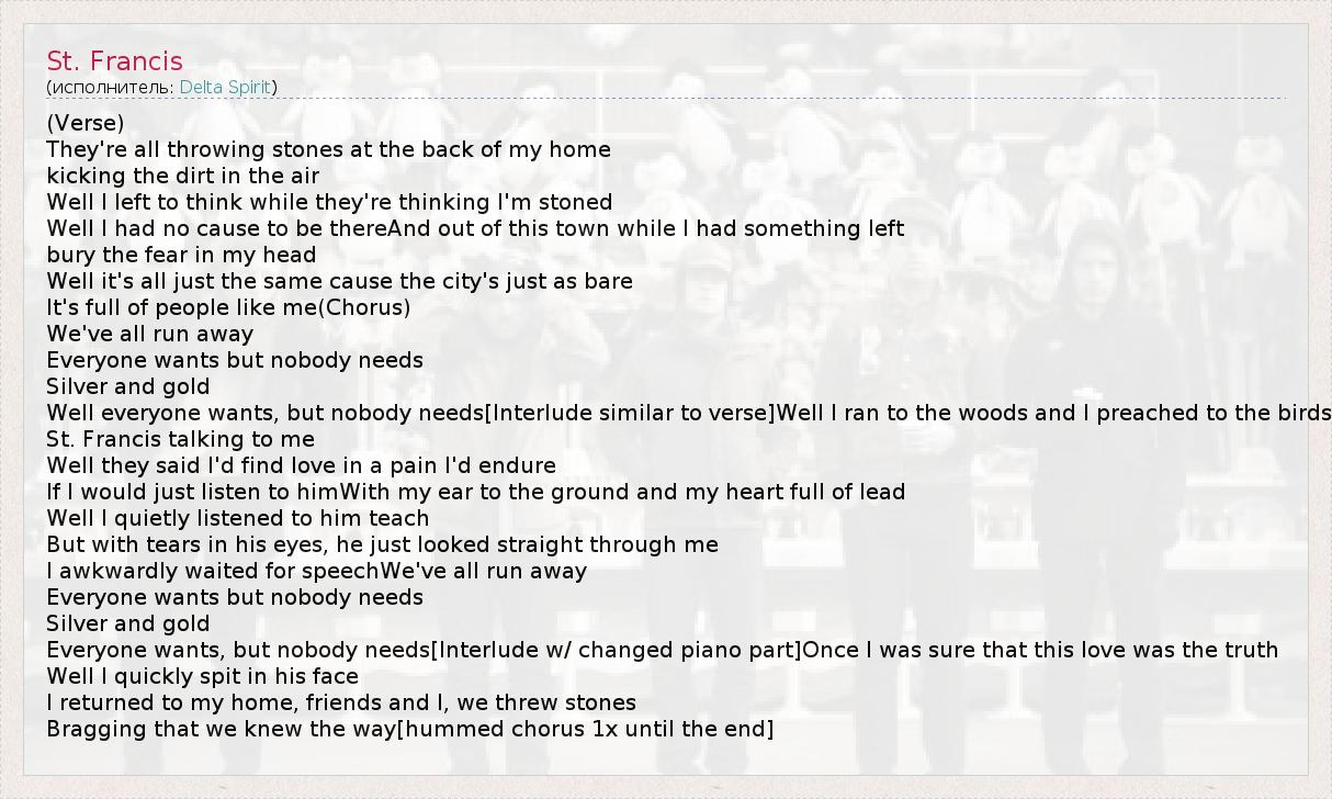 А как ты думаешь, о чем песня "St. Francis" ?