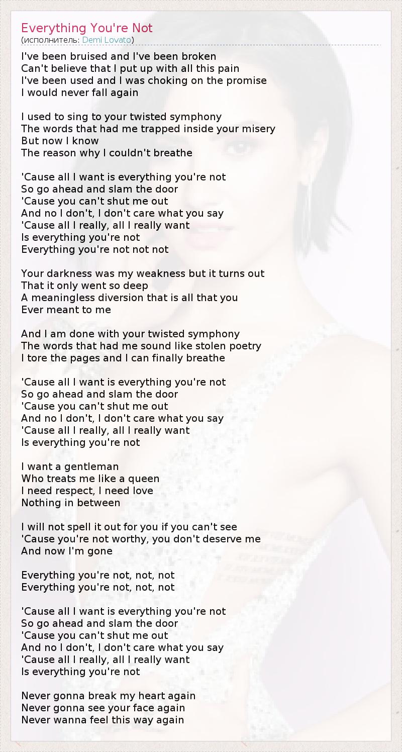 А как ты думаешь, о чем песня "Everything You're Not" ?