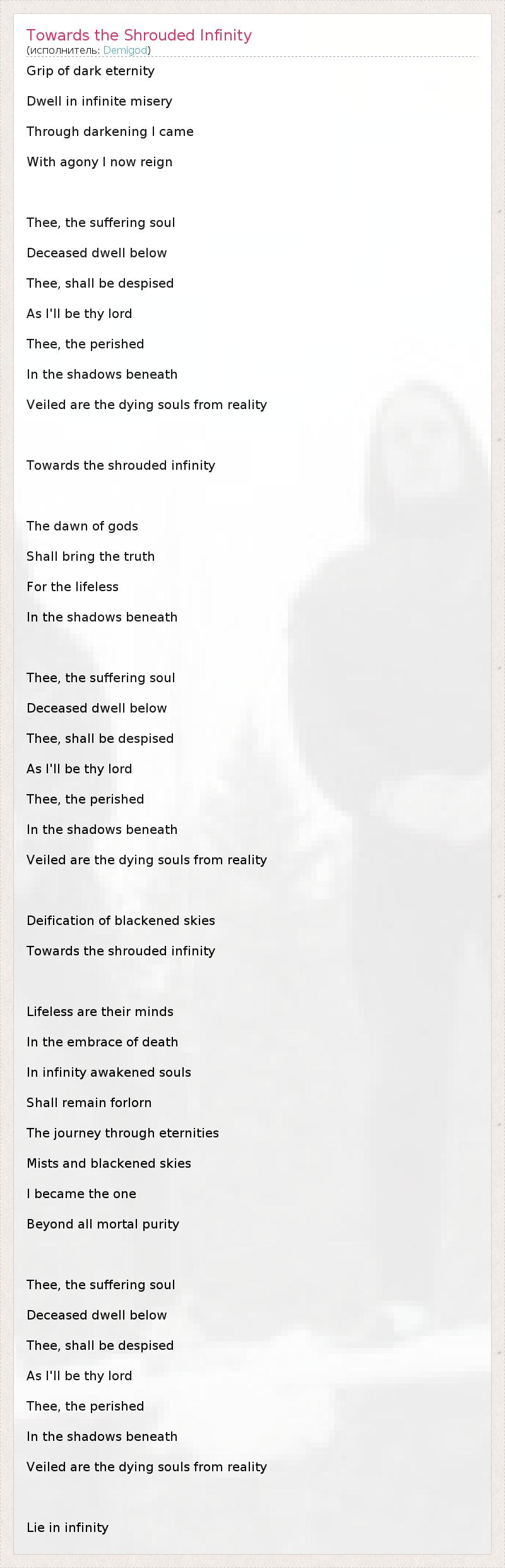 А как ты думаешь, о чем песня "Towards the Shrouded Infinity" ?