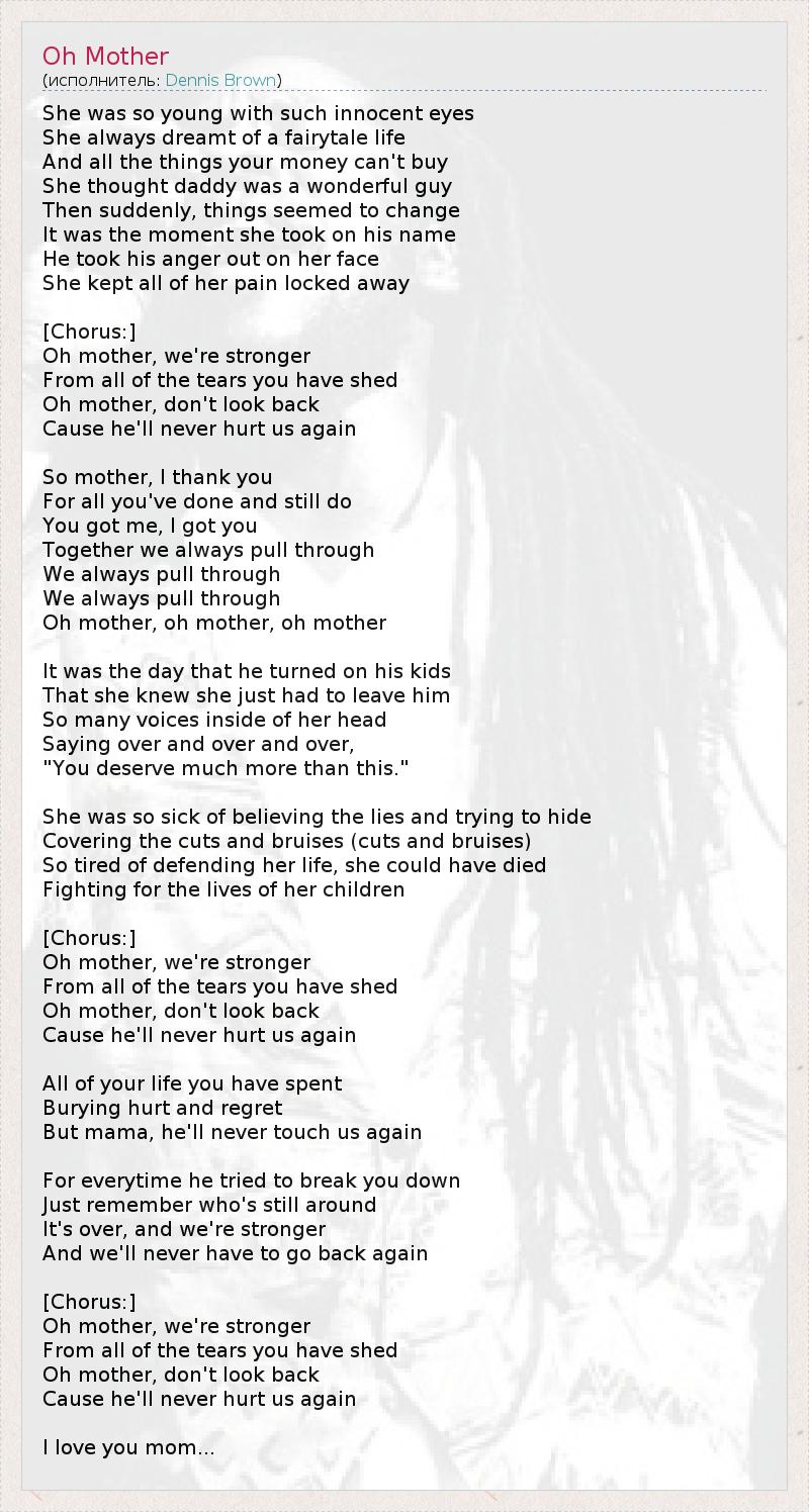 А как ты думаешь, о чем песня "Oh Mother" ?