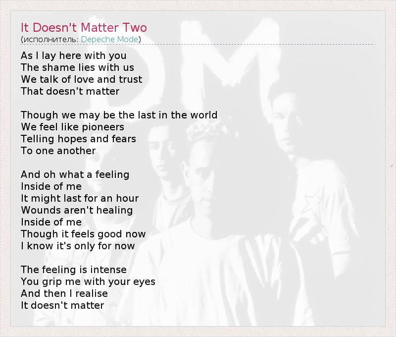 А как ты думаешь, о чем песня "It Doesn't Matter Two" ?