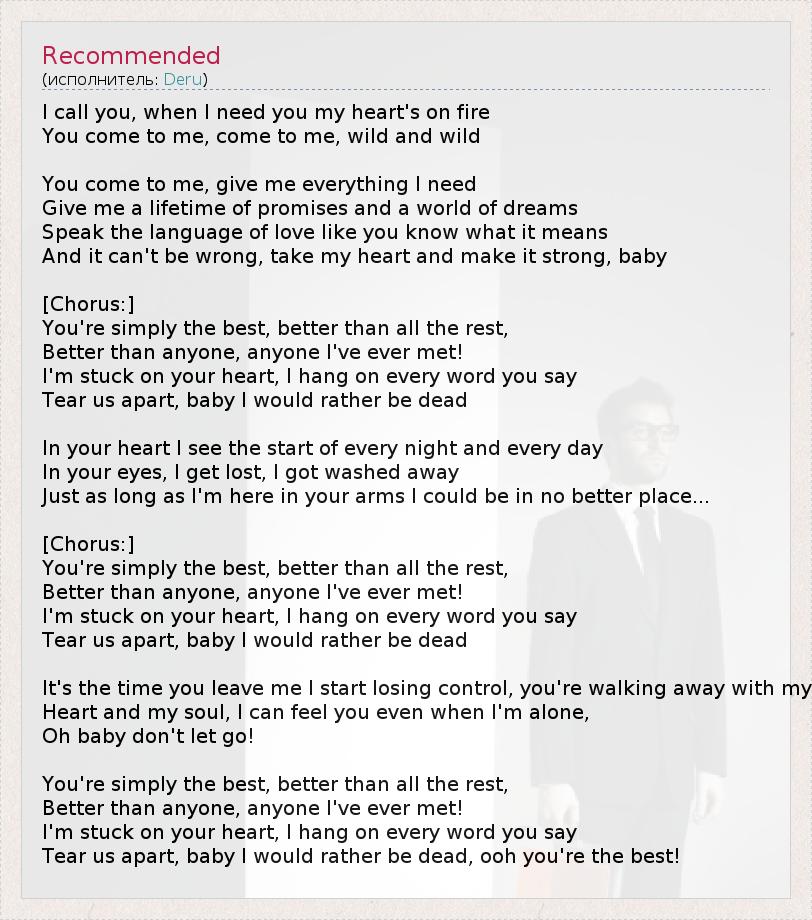 Tear us apart, baby I would rather be dead, ooh you're the best!