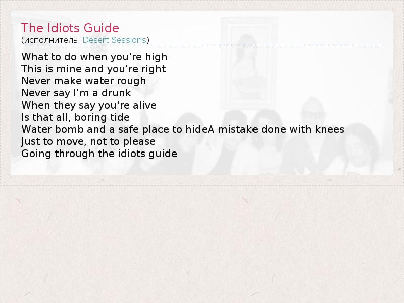 А как ты думаешь, о чем песня "The Idiots Guide" ?