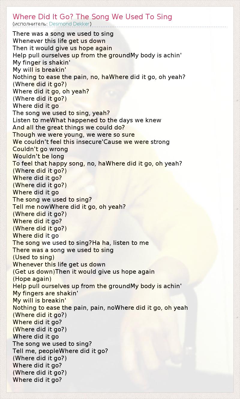 ГлавнаяИсполнителиDesmond DekkerWhere Did It Go? The Song We Used To Sing