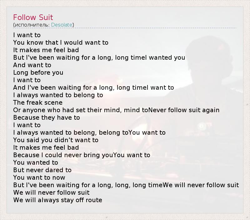 But I've been waiting for a long, long, long timeWe will never follow suit