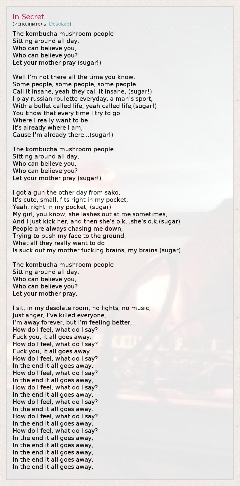 А как ты думаешь, о чем песня "In Secret" ?
