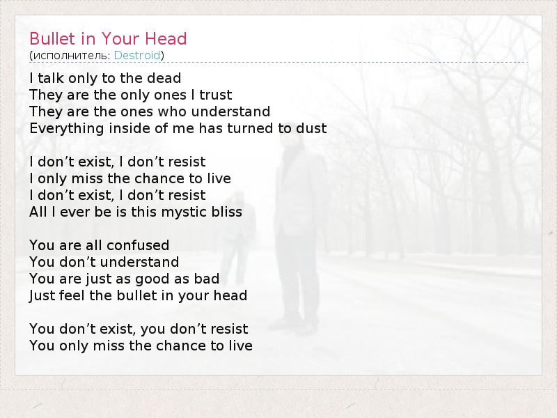 А как ты думаешь, о чем песня "Bullet in Your Head" ?