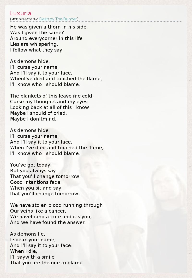Это интересно:Destroy The Runner - это христианская металкор-группа из Сан Диего, Калифорния. 12 сентября 2006 года на Solid State Records вышел их дебютный альбом "Saints". 15 Апреля 2008-го же состоялась премьера нового альбома I, Lucifer. С новым альбомом пришло и новое, более прогрессивное звучание. Альбом сразу стартовал в Billboard Top Christian Albums на 27 месте и в Top Heatseekers chart на 25 месте.Группа очень похожа своим звучанием на As... продолжение