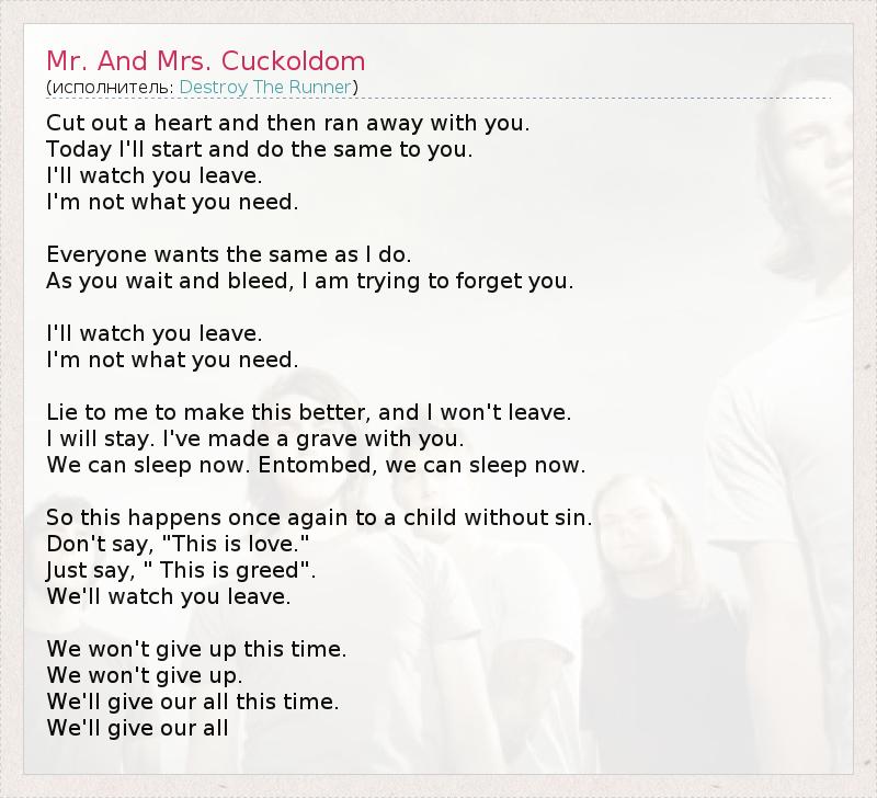 А как ты думаешь, о чем песня "Mr. And Mrs. Cuckoldom" ?