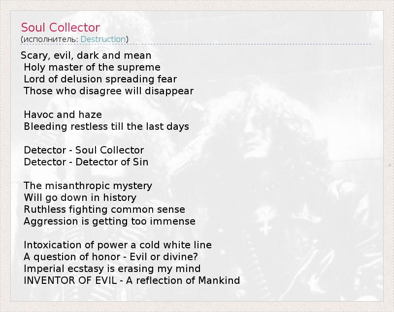 А как ты думаешь, о чем песня "Soul Collector" ?