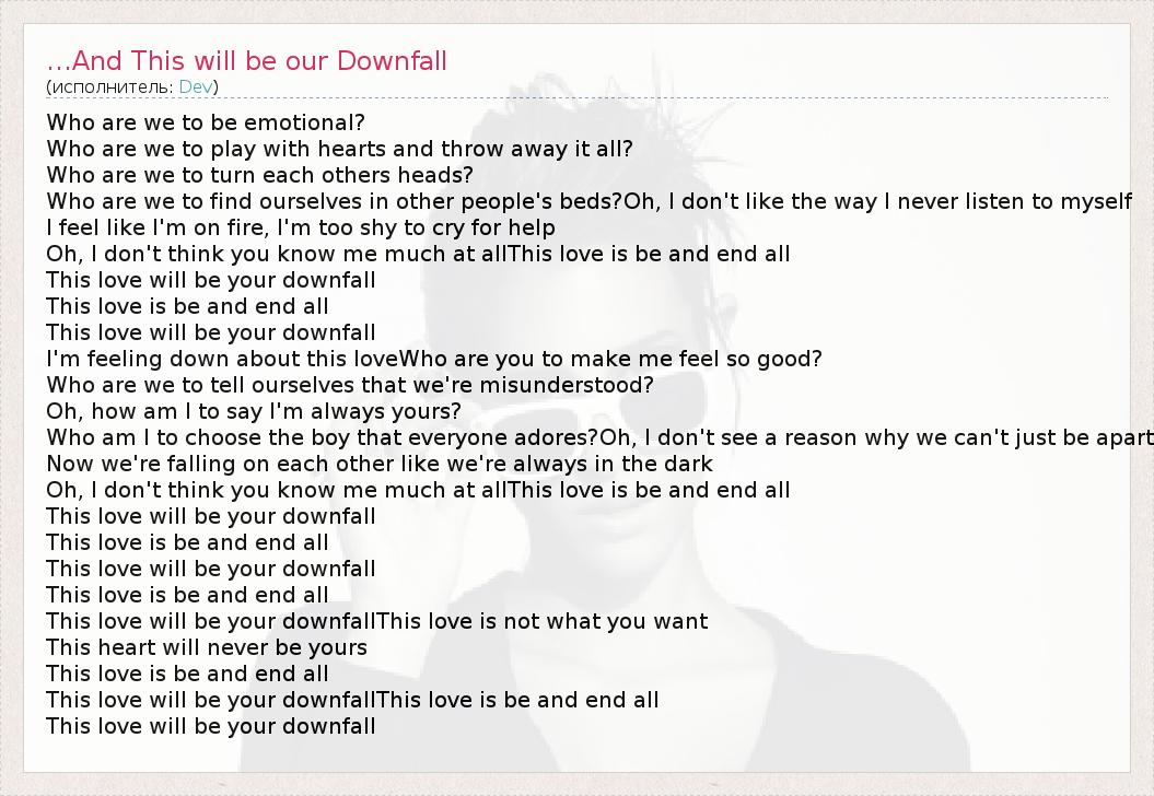 А как ты думаешь, о чем песня "...And This will be our Downfall" ?