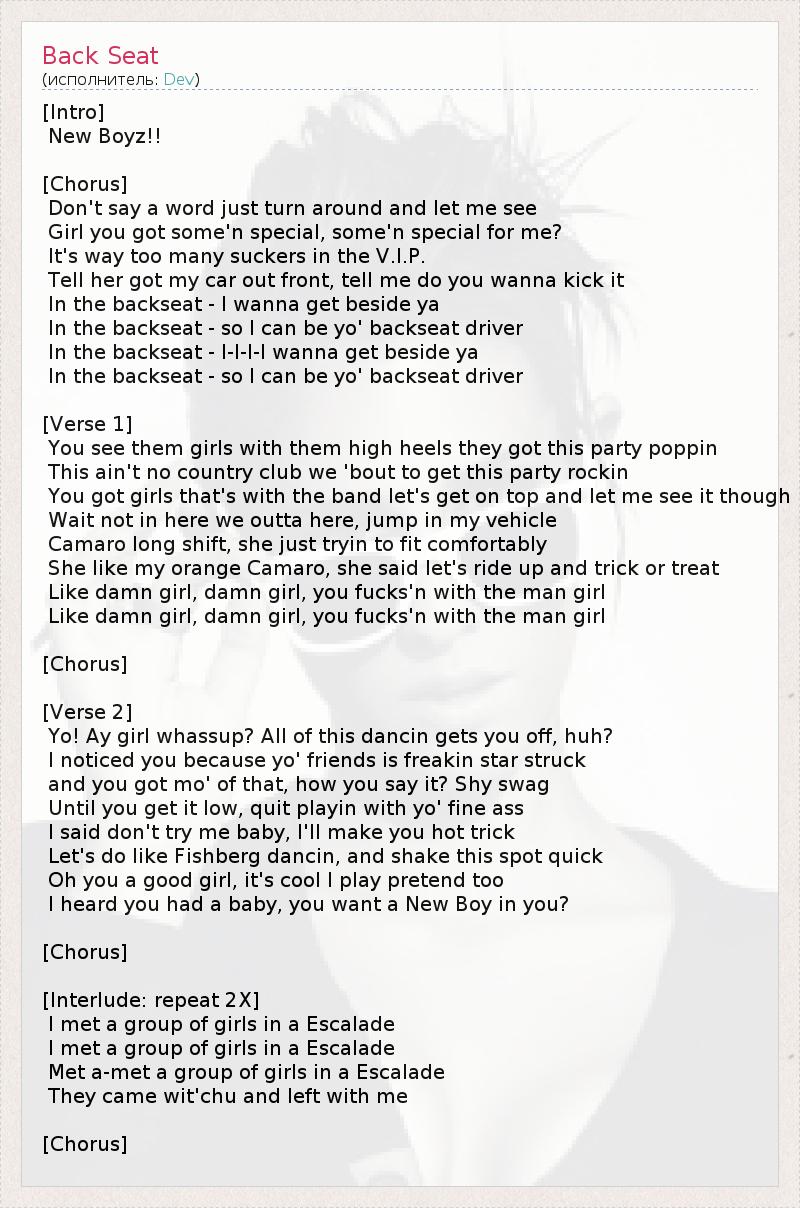 На заднем сиденье - я я я я хочу устроиться рядом с тобой