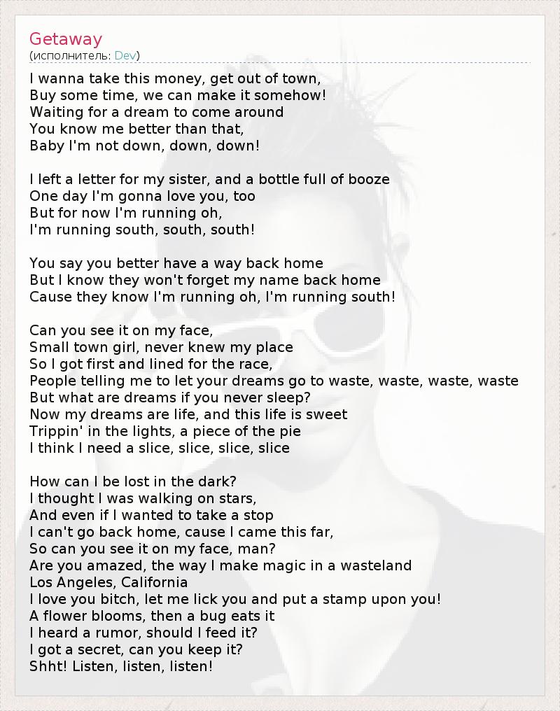 А как ты думаешь, о чем песня "Getaway" ?