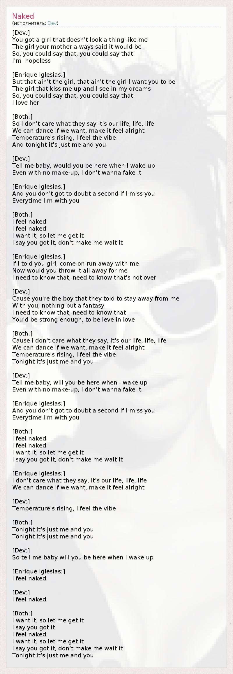 А как ты думаешь, о чем песня "Naked" ?