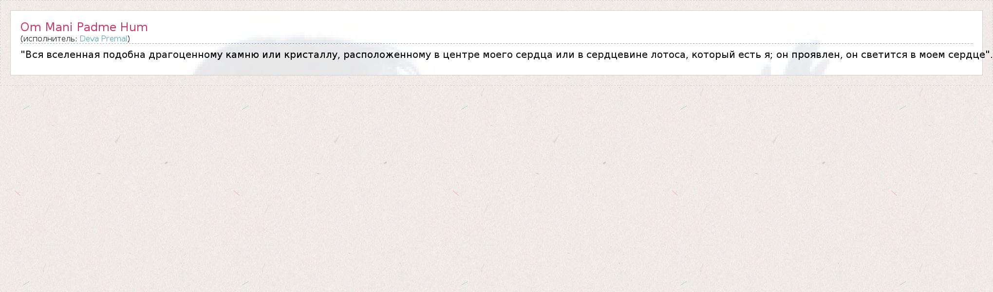 А как ты думаешь, о чем песня "Om Mani Padme Hum" ?