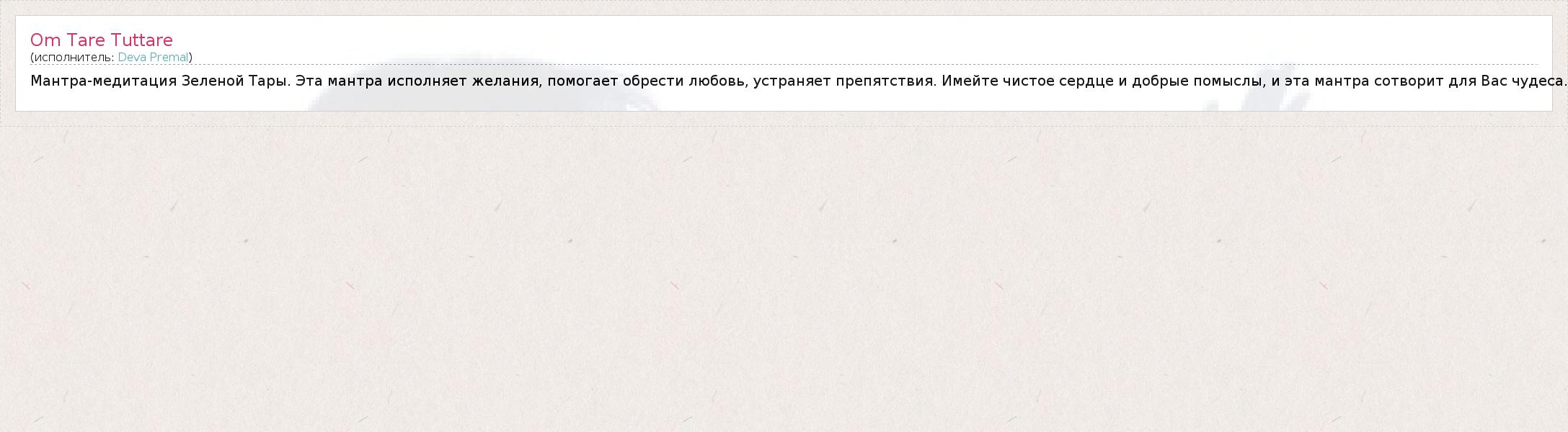 Мантра-медитация Зеленой Тары. Эта мантра исполняет желания, помогает обрести любовь, устраняет препятствия. Имейте чистое сердце и добрые помыслы, и эта мантра сотворит для Вас чудеса.
