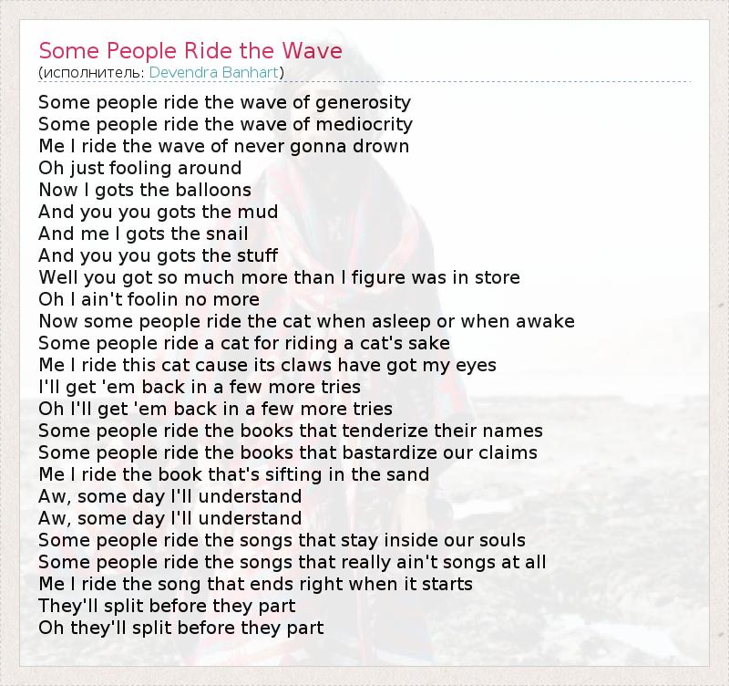 А как ты думаешь, о чем песня "Some People Ride the Wave" ?