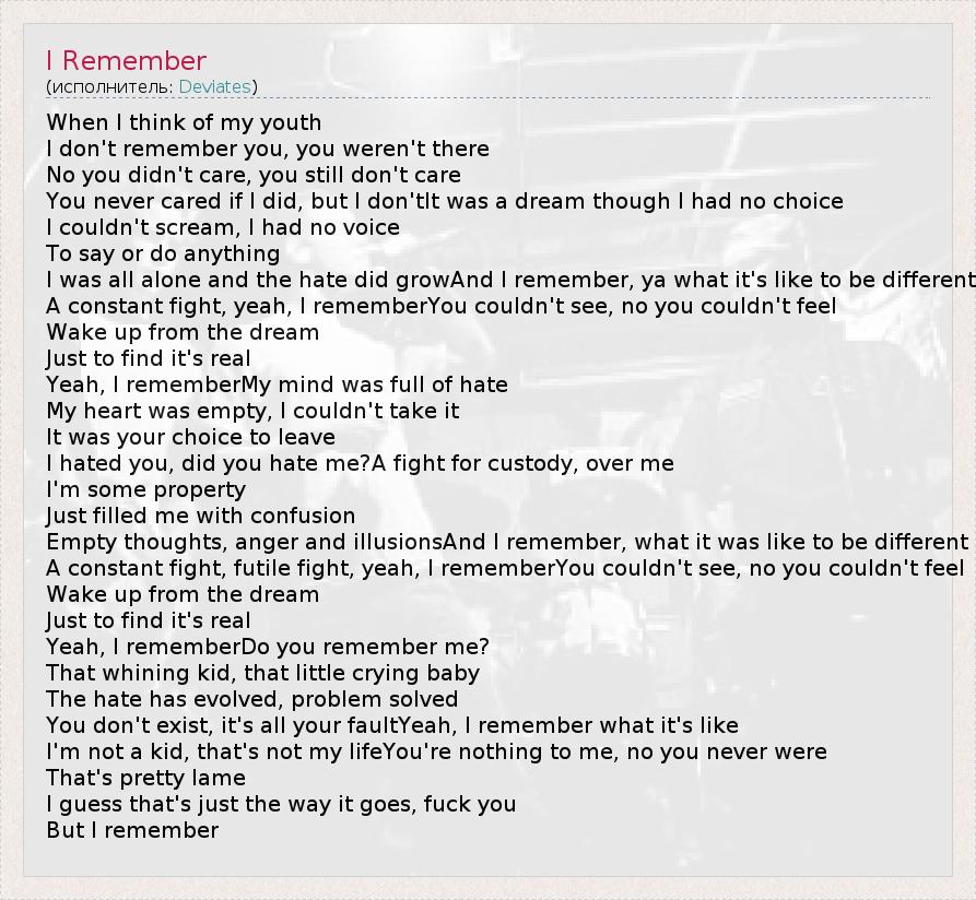 Empty thoughts, anger and illusionsAnd I remember, what it was like to be different