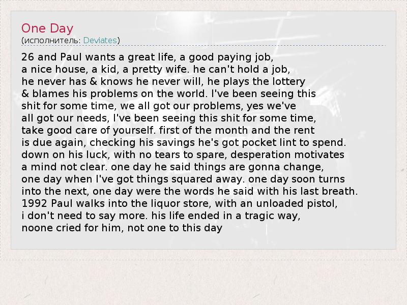 А как ты думаешь, о чем песня "One Day" ?