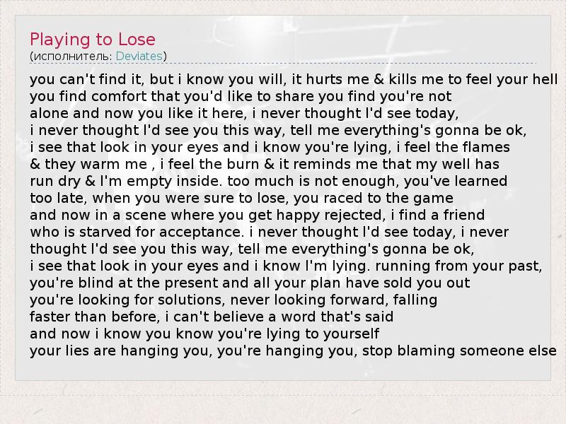 А как ты думаешь, о чем песня "Playing to Lose" ?