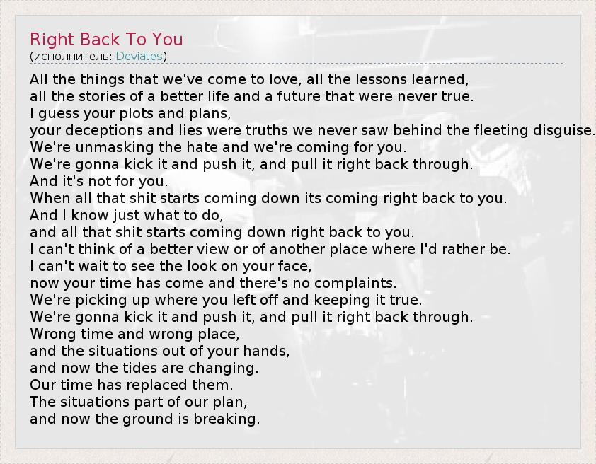 А как ты думаешь, о чем песня "Right Back To You" ?