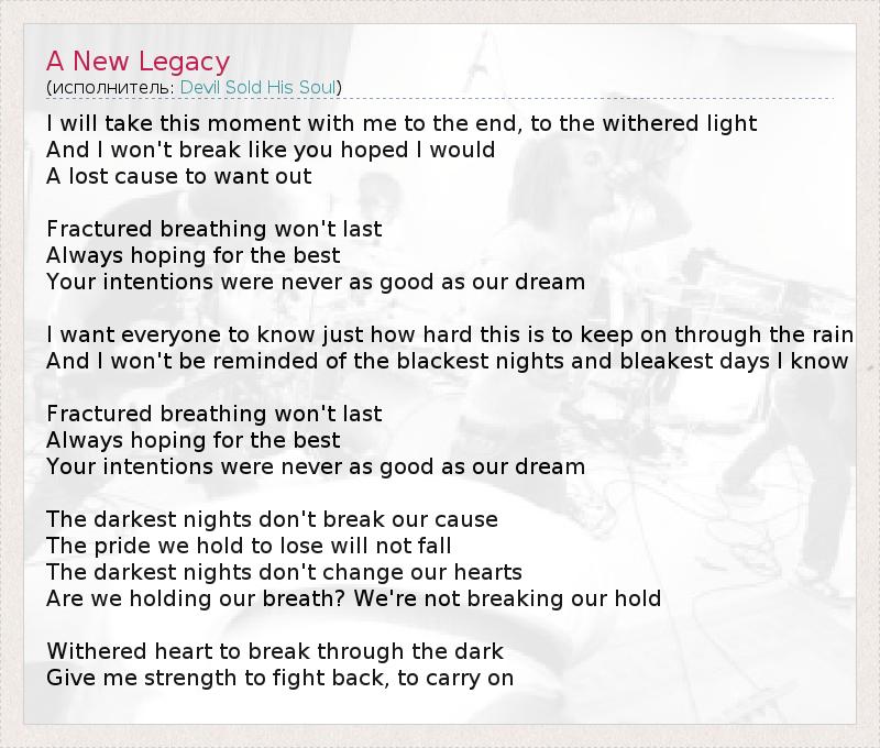 А как ты думаешь, о чем песня "A New Legacy" ?
