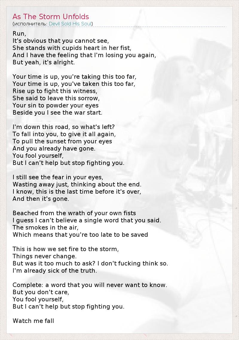 А как ты думаешь, о чем песня "As The Storm Unfolds" ?