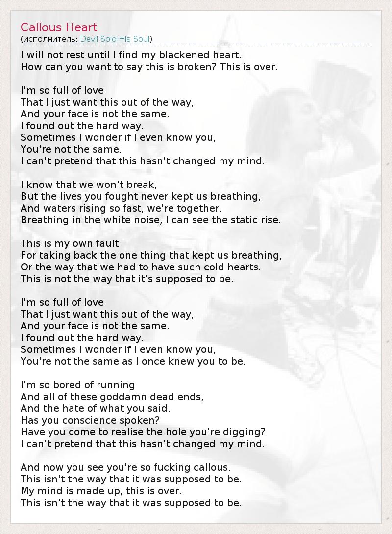 А как ты думаешь, о чем песня "Callous Heart" ?